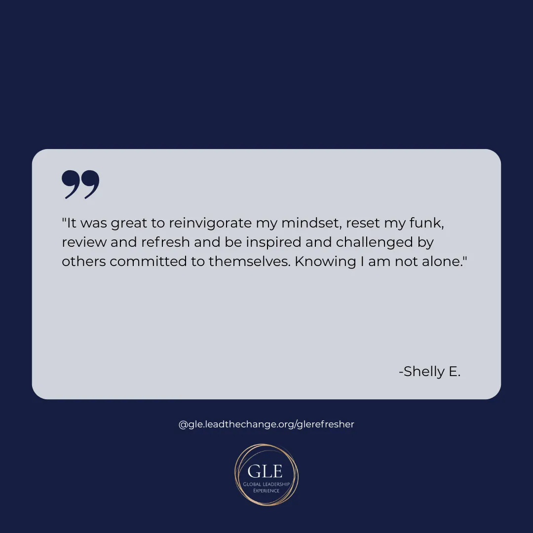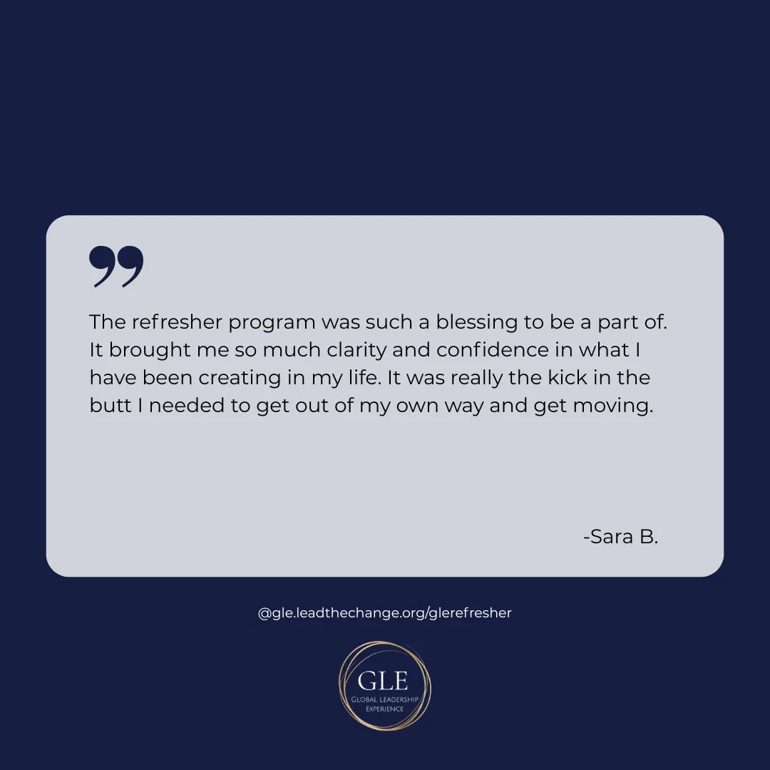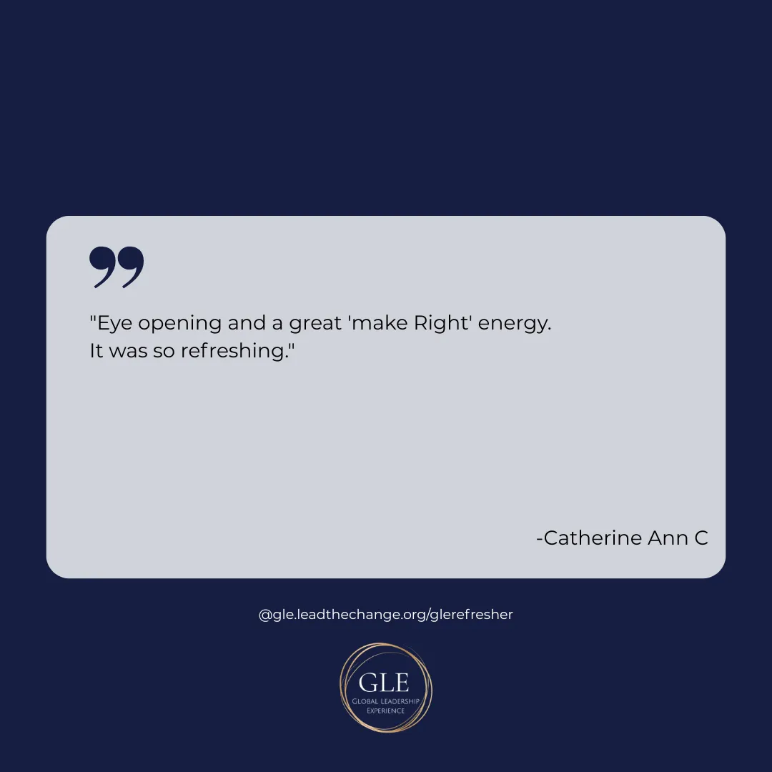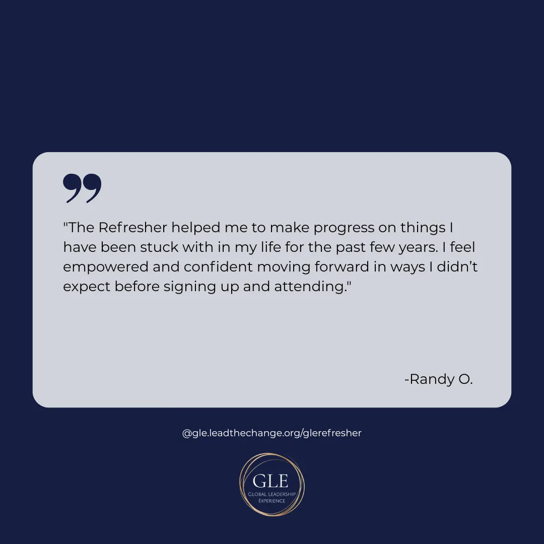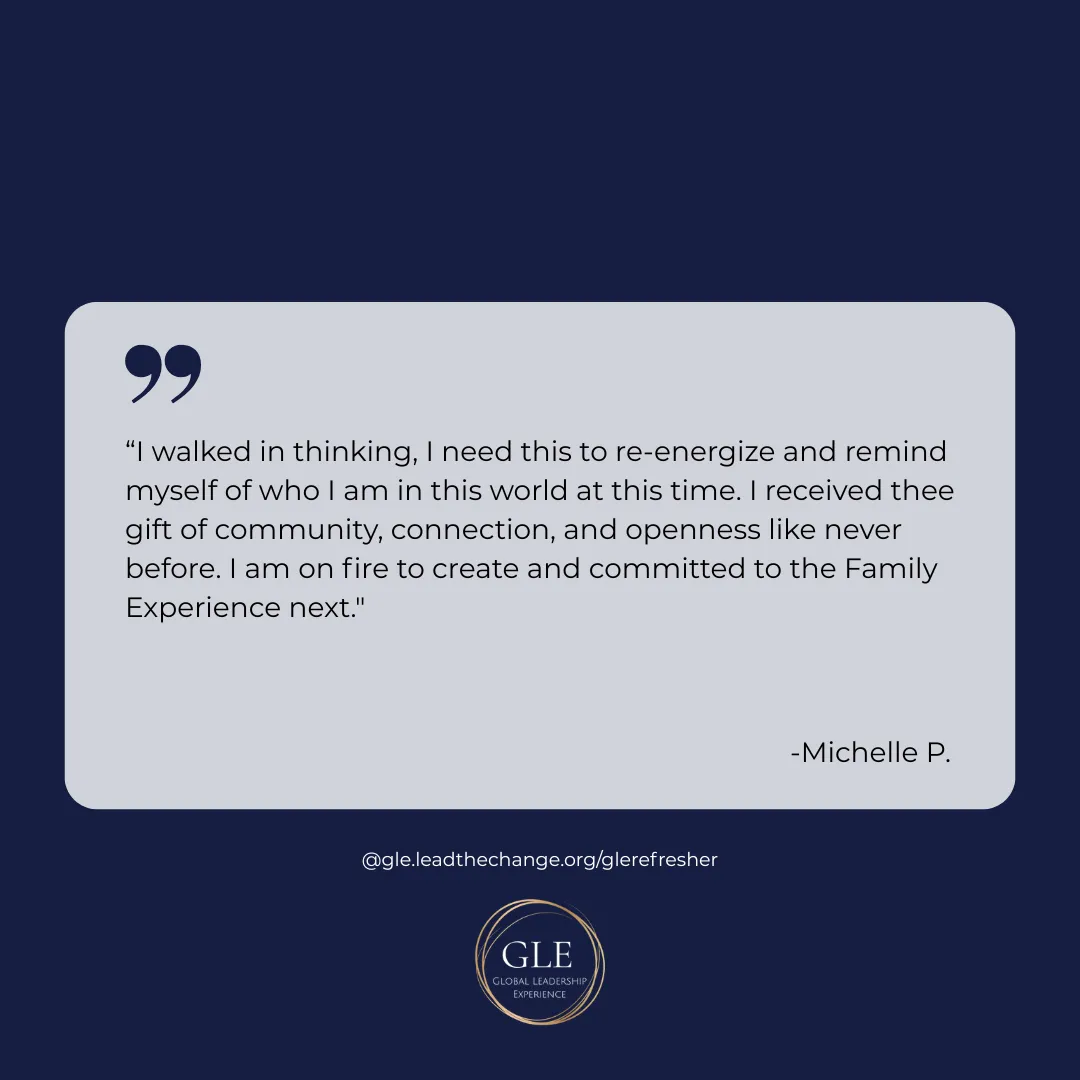 The Global Leadership Experience Leadership Refresher is designed exclusively for graduates of transformational leadership programs who are ready to deepen their clarity, strengthen their leadership, and fully embody their vision in life, work, and relationships.